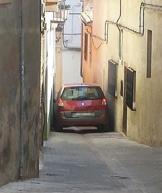 Kvinden kom kørende i sin Renault Scénic i går klokken 12:30, da hun traf den mindre smarte beslutning at køre ned ad en smal og skrånende gade i byen Bétera.