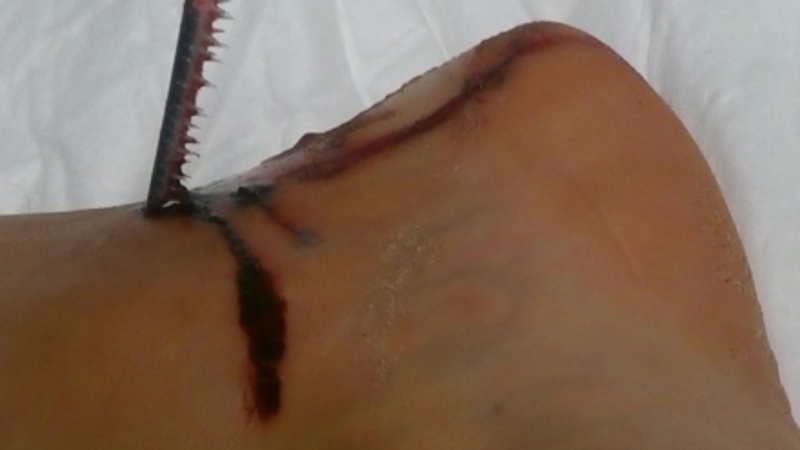 SPORT & FRITID: Kitesurfer blev angrebet af hornfisk, hvis skarpe kæbe satte sig fast og efterlod et voldsomt sår.