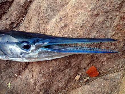 Surfer spiddet af hornfisk