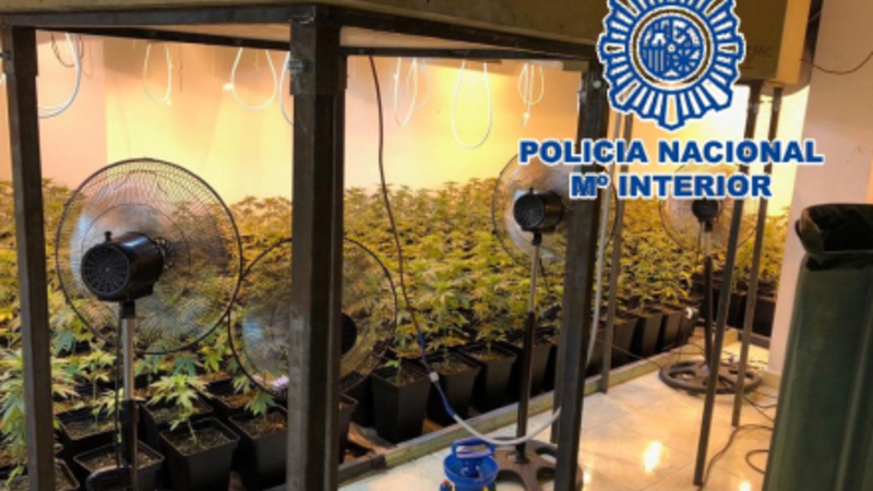Mændene havde lavet et indendørs drivhus i et lejet hus i Benalmádena, Málaga, hvor de gik og nussede om 1.100 marihuanaplanter.