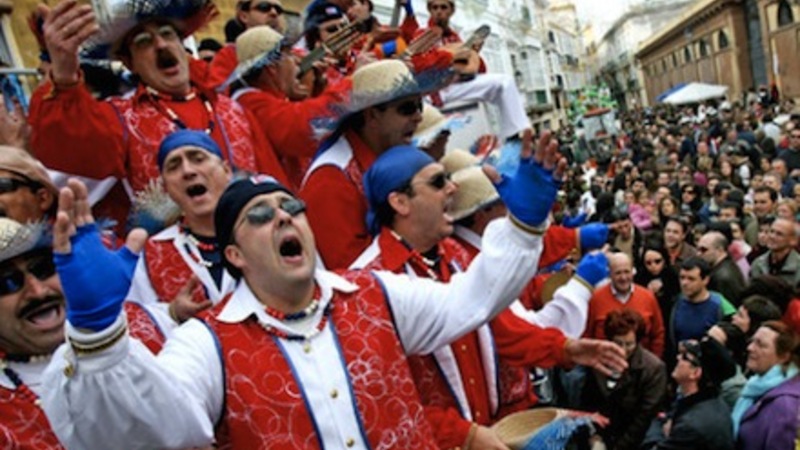 Her er der masser af sjove udklædninger og berømte 'Chirigotas', der er en slags satiriske sange, der gør grin med politikere og aktuelle begivenheder i samfundet.