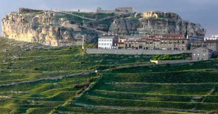 På bakketoppen ligger det lille kapel 'La Ermita de la Magdalena', mens hovedparten af byen er opført langs landevejen ved foden af klippen.
