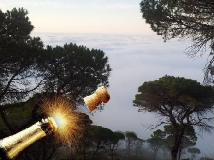 Ved udsigtspunktet byder vi det nye år velkommen med Cava og kransekage.