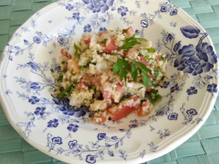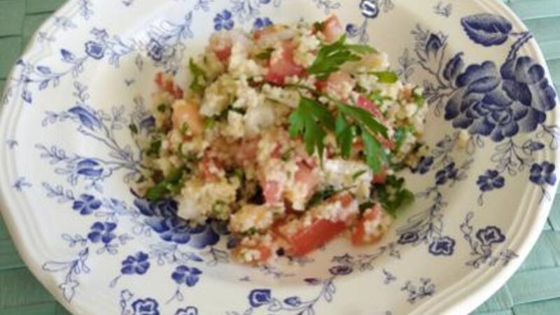Den oprindelige opskrift er lavet med bulgurhvede, men jeg kan bedre lide den med couscous. Det er også valgfrit at tilføje lidt pebermynte i blandingen.
