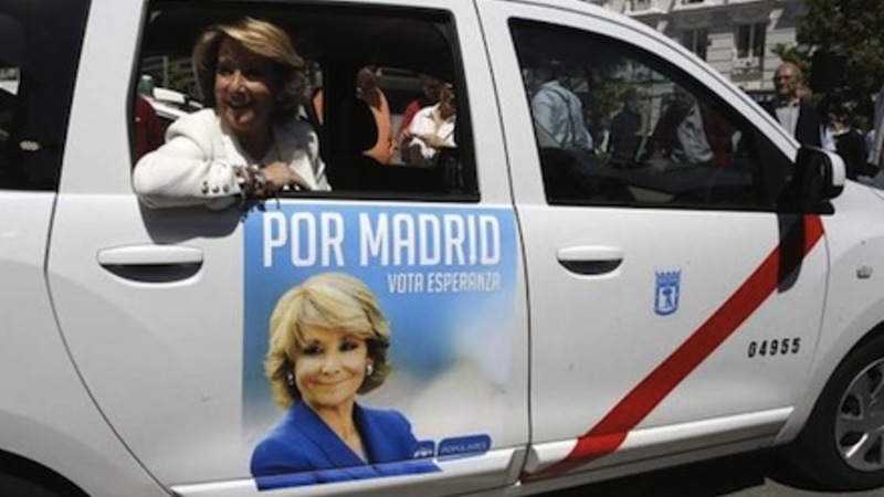 Taxachauffører i Madrid er godt trætte af den igangværende valgkamp. De er nemlig blevet dænget til med reklameplakater for den konservative spidskandidat til borgmesterposten i Madrid, Esperanza Aquirre.