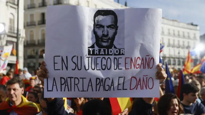 Hundredtusinder af mennesker - to millioner ifølge PP og 450.000 ifølge regeringsdelegationerne - mødte op i centrum af Madrid og andre spanske byer søndag for at følge PP's opfordring til at protestere mod Pedro Sánchez og amnestiloven.