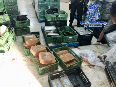 Policía Nacional har smækket håndjernene på fire udlændinge og en spanier, der forsøgte at smugle en kæmpe mængde stoffer ind i landet.