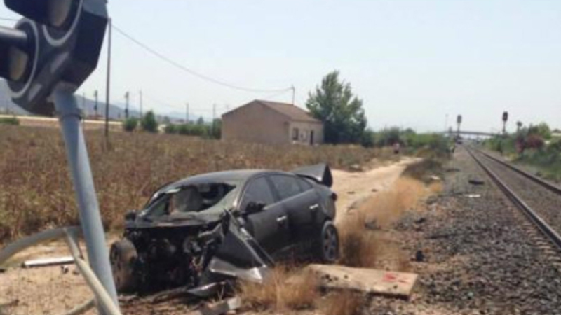 En pendlertog, der forbinder Alicante og Murcia, måtte tirsdag eftermiddag hive i nødbremsen, da en sort bil pludselig kørte ud over en jernbaneoverskæring i den lille landsby Medía Legua i Orihuela. Den kvindelige fører så ikke hverken tog eller signallamperne.
