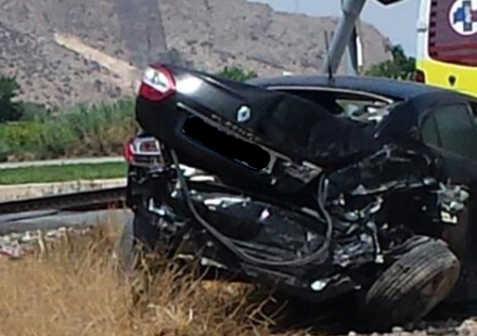Bilist kørte direkte ind i et tog i fart ved en jernbaneoverskæring i Orihuela. Bilisten blev hastet i ambulance til skadestuen på Hospital Vega Baja. Hendes tilstand er ukendt, men hun var ved bevidsthed.