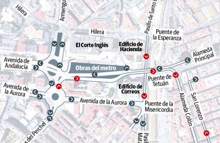 Byggeriet af Metroen har forårsaget trafikomlægninger i det helt store omfang. Både i avenida de Andalucia, ved El Corte Inglés, avenida de la Aurora og la Alameda de Colón.