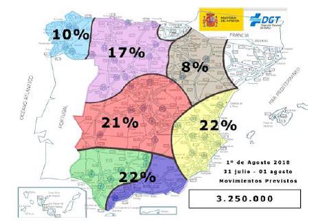 Søndag koncentreres den tætte trafik igen på adgangsvejene til kysten og strandene samt landevejene mellem kystbyerne. Om eftermiddagen begynder trafikken så at bevæge sig i den anden retning igen, og der ventes pres på tilkørselsvejene til byområderne igen mellem 19 og midnat, men det kan fortsætte til senere, advarer DGT.