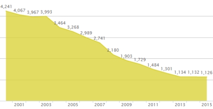Der blev i 2015 i alt dræbt 1.126 mennesker mod 1.132 i 2014.