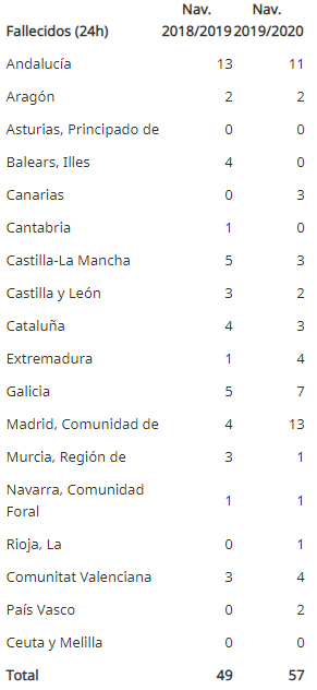 Ifølge Trafikdirektoratet, DGT, startede den særlige helligdagstrafik klokken 20:00 den 20. december 2019 og varede frem til midnat den 6. januar 2020.