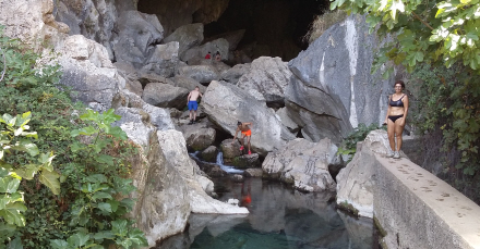 Selvom man ikke kan komme ind i hulen uden forudgående tilladelse og ikke mindst det nødvendige udstyr, så kan man se det store vandfald og søen med krystalklart og iskoldt vand - selv midt i sommerens værste hede.