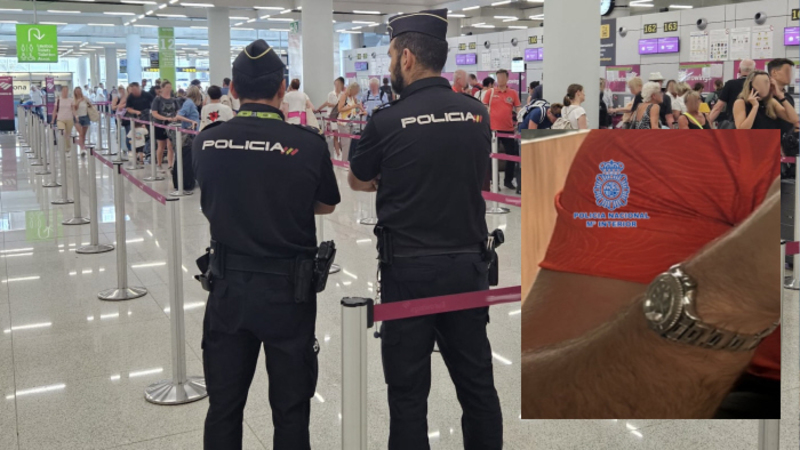 Politiet har anholdt en turist i Málagas lufthavn med det ur, han netop havde meldt stjålet.