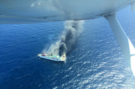 De to skibe fra rederiet Baleària, Visemar I og Publia, måtte ændre kurs. Det første måtte vende skuden 180 grader for at komme det brændende skib til undsætning.