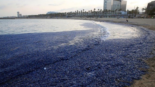 NATUR: Blå bløddyr har indtaget Barcelonas strande. De er klamme, men ufarlige.