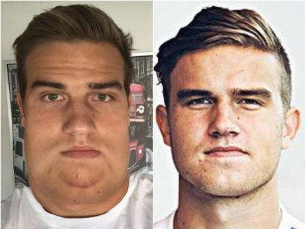 Han brugte nemlig en bestemt applikation, der kan få personer til at se meget tykkere ud, end de er. Som afskedssalut smed han en selfie gennem tykkert-appen og lagde på de sociale medier. For at udrydde al tvivl så er det billedet til venstre øverst i artiklen.