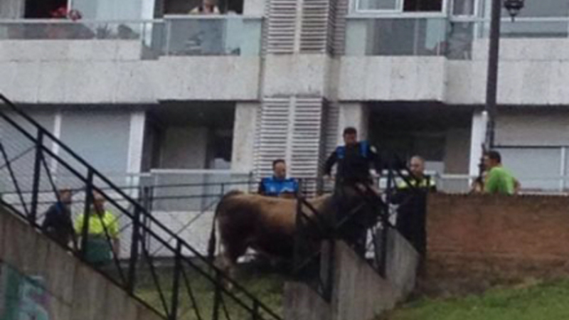 VIDEO: Tyr er sluppet fri og overrasker i den grad bilister og lokale på sin rejse igennem en nordspansk by.