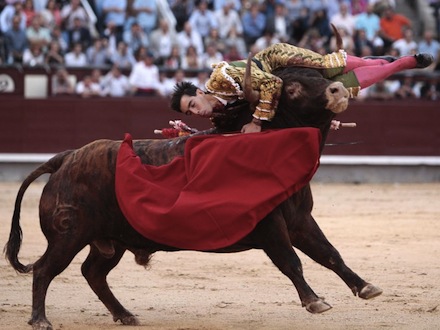 Festlighederne under Feria de San Isidro i Madrid blev i går overskygget af et grimt uheld, da den 25-årige tyrefægter Saúl Jiménez Fortes kom galt af sted under sin såkaldte faena, hvilket er det tidspunkt, hvor matadoren er alene med tyren.