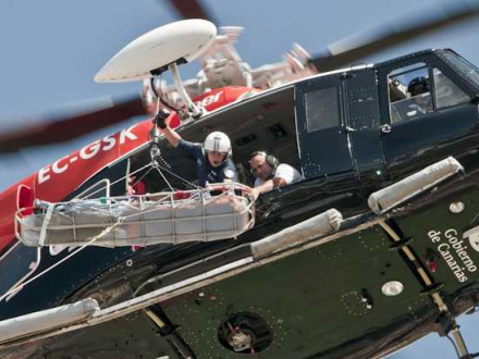 Redderne konstaterede, at manden havde moderat hoftetraume, så han blev fløjet med SUC-helikopteren til Universitetshospitalet Nuestra Señora de la Candelaria.