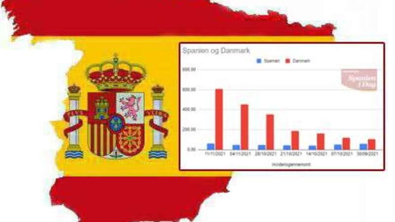 CORONA: Smittetallene i Danmark fortsætter himmelflugten, men Spanien viser også stigning.
