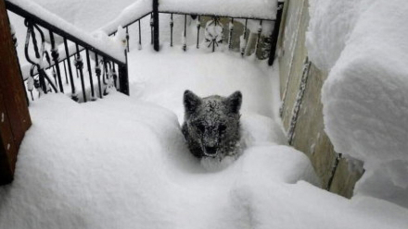 Den unge mand havde tid til at tage et billede af ungen, hvor den næsten er begravet op til halsen i sne. Dette billede er nu blevet ret kendt i Spanien.