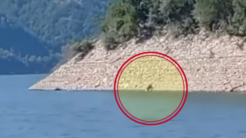 Uventet besøg: Brun bjørn tager en dukkert i vandreservoir