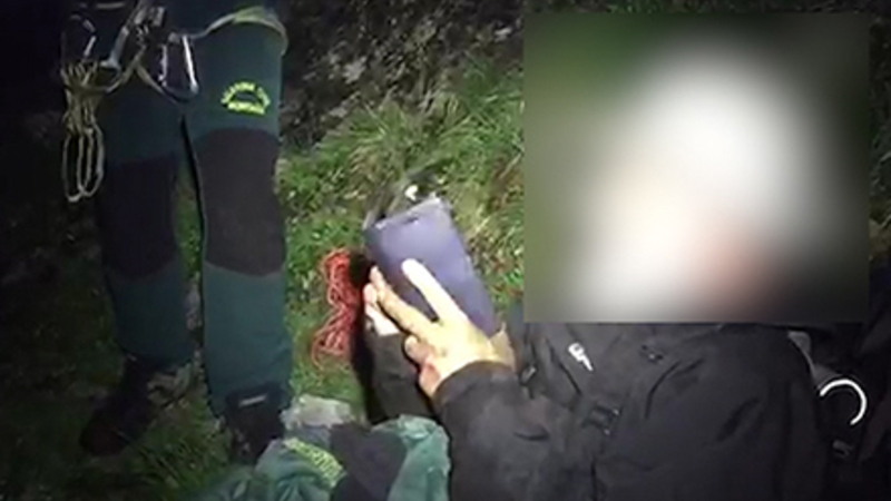 Betjente måtte til fods kravle frem til den nødstedte og give ham en frakke og noget mad. Derefter var de tvunget til at tilbringe natten på bjerget sammen med ham i en lille hjemmebygget bivuak.
