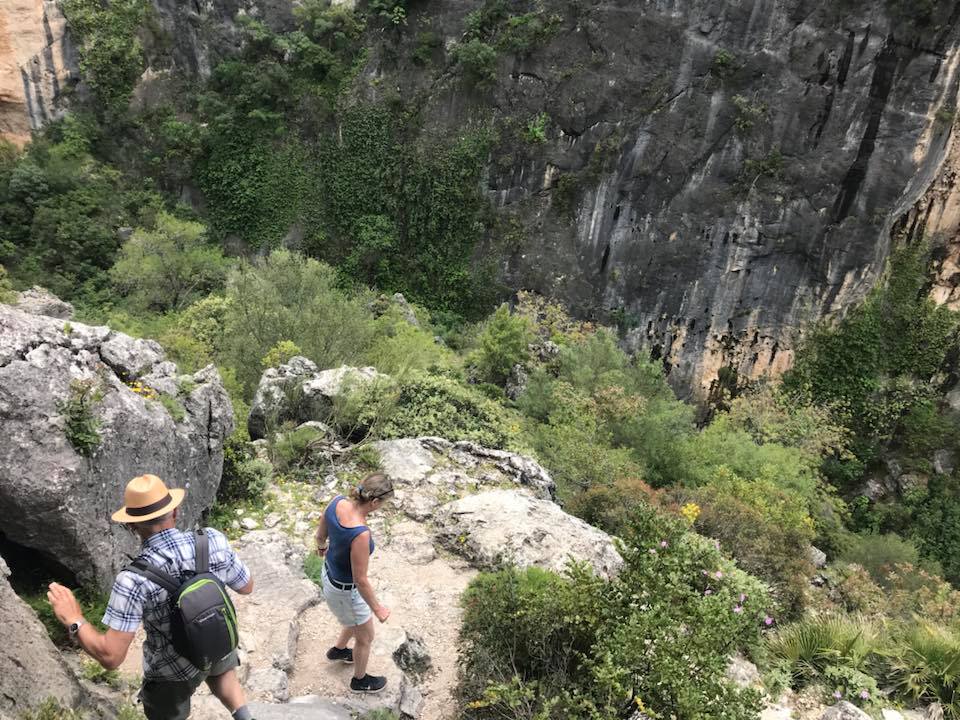 Efter at have gået de 261 meter nedad havner vi i et semi-udtørret flodleje, som vi følger et par hundrede meter “mod strømmen”.