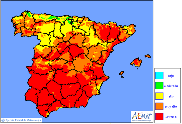 Risiko for den meget støvholdige vind, calima, på den sydvestlige del af halvøen.