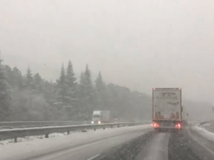 I går oplevede store dele af landet meget stærk blæst og generelt vintervejr, som i Granada på billedet herover. Men i dag ser det noget anderledes ud med sol mange steder.