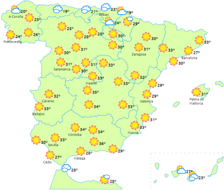 VEJR: Vi nærmer os den notorisk varmeste måned i Spanien, og nu får kviksølvet da også et nyk opad igen.