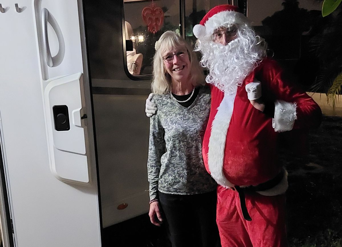 Vi havde selvfølgelig gaver i vognen; fra mig til dig og omvendt. Kate fik et par gode travesko og Peter en cykelhjelm. Lidt til hver ende af kroppen. Den 25. blev en fælles julekomsammen for alle på pladsen, hyggeligt.