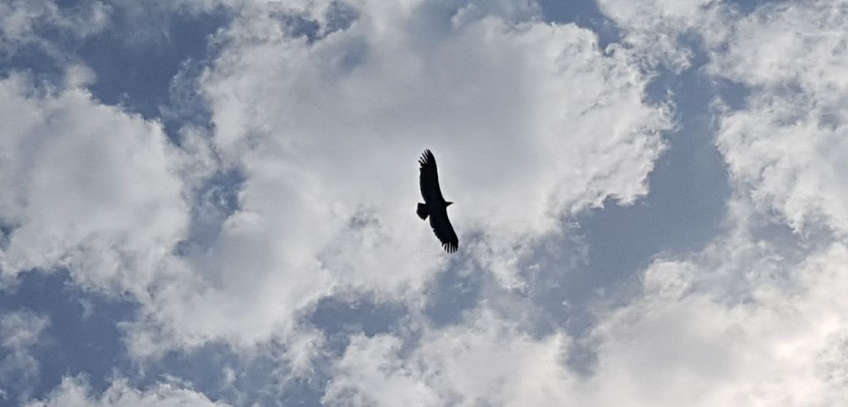Og så kunne vi sidde sidst på dagen ved camperen med udsigt over dal og bjerg og se de store gåsegribbe svæve rundt lige uden for rækkevidde af vores kamera. Meget betagende.
