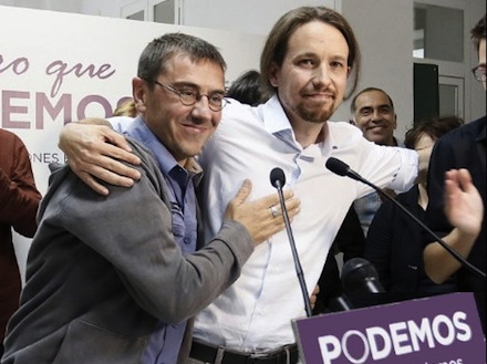Podemos’ spydspids, Pablo Iglesias, fortalte ved gårsdagen pressemød, at han netop var blevet orienteret om Monederos tilbagetræden - angiveligt ”efter en samtale få minutter inden mødets start”.