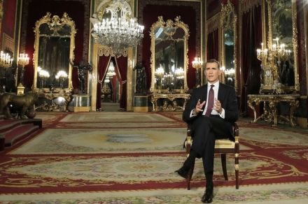 I aften taler jeg fra det kongelige palads, hvor Kongehuset afholder sine statslige handlinger, og hvorunder vi med værdighed og højtidelighed ønsker at udtrykke Spaniens storhed.