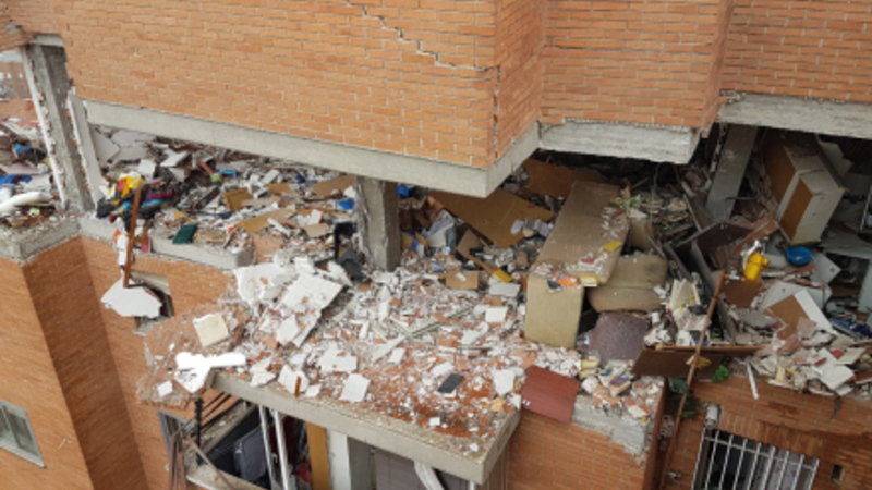 Bygningen, der blev ramt, ligger i Avenida de Pablo Neruda nummer 17, og den skal delvist rives ned, da eksplosionen forårsagede omfattende skader.