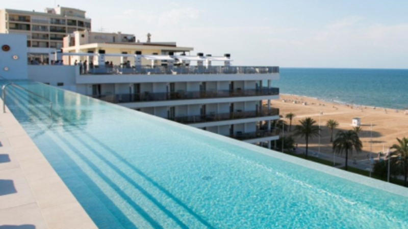 Infinity pool af de helt store er installeret på taget af Hotel RH Bayrén i Gandia, hvor stort set hver hotelgæst kan ligge og flyde med direkte og uhindret udsigt til Middelhavet.