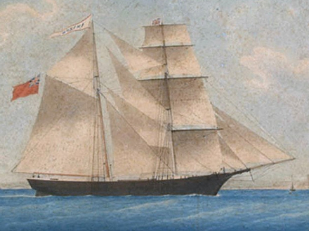 Et maleri af det forliste skib. Det hed Mary Celeste