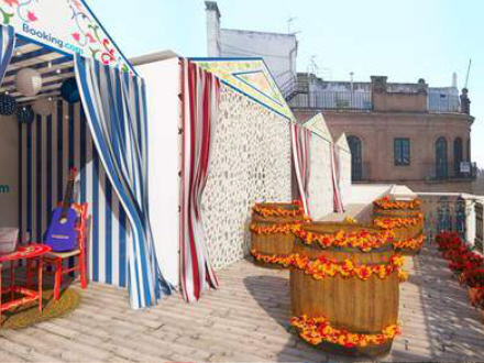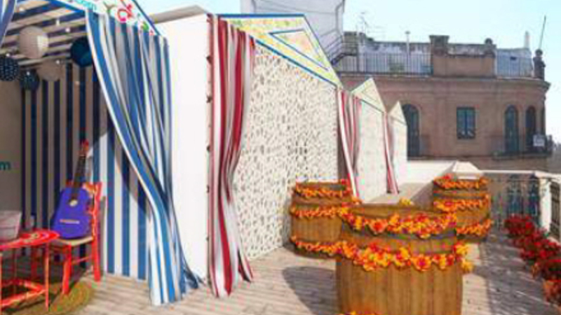 Sevillas aprilfest er verdensberømt, men mange af de traditionelle festtelte ‘casetaer’ kræver særlig invitation og er ikke for turister. Derfor har Booking.com markeret festlighederne ved at lave casetaer til overnatning på en tagterrasse i hjertet af byen. Teltene afspejler byfestens forskellige sider og giver mulighed dermed for at “opleve feriaen helt indefra”.