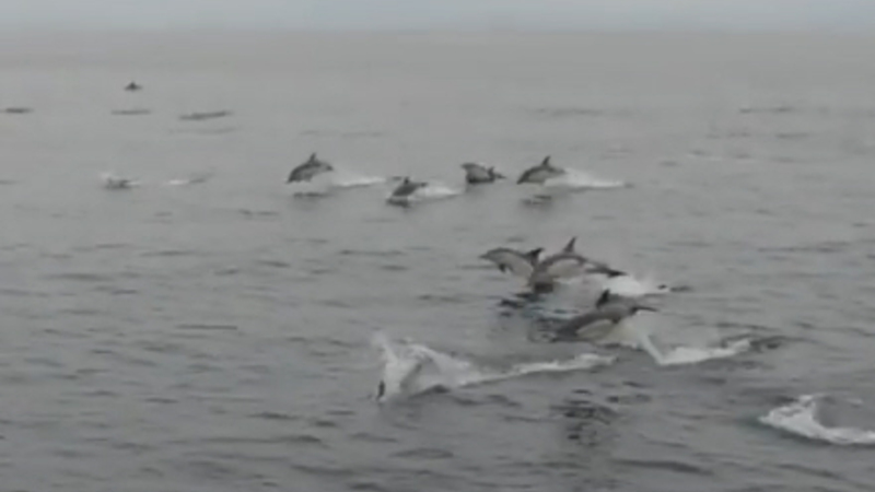 VIDEO: Det virker helt vildt, men den er go' nok. Eksperterne kan slet ikke få armene ned, efter tusindvis af delfiner kom ud for at lege.