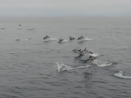 De 3.000 delfiner dukkede pludselig op ud for flodudmundingerne i Rias Baixas, og det lykkedes at filme mødet.