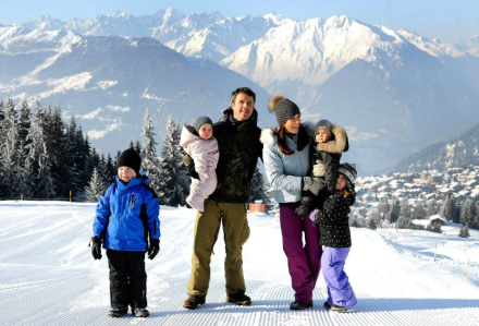 Også den danske kronprins boltrer sig i disse dage i sneklædte bjerge. Frederik har dog følgeskab af både Kronprinsesse Mary og deres fire børn på det schweiziske skisportsted Verbier.