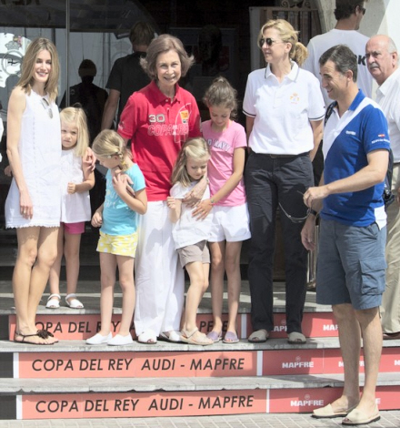 Kronprins Felipe ankom for anden dag i træk alene til sejlklubben Club Náutico i Palma de Mallorca for at overvære kapsejladsen Copa de Rey. Kronprinsesse Letizias var taget på sight-seeing sammen med sin svigerinde, prinsesse Cristina.