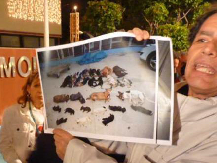 400 personer demonstrerede i går foran rådhuset i Torremolinos i protest mod ulovlig aflivning af mere end 2.000 hunde og katte på det lokale dyreherberg Parque Animal.