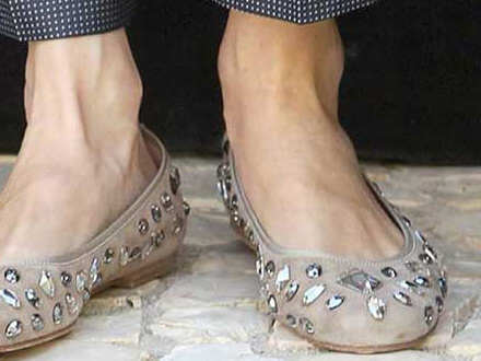 Billeder af de flade prinsesse-sko røg i løbet af ingen tid på Internettet, hvor der har været et hav af kommentarer. Ikke alle synes om, at prinsessen er steget ned fra højderne.