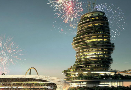 Den nye fodbold-ø bliver bygget 45 minutters kørsel fra Dubai-lufthavn, der er verdens fjerde største, når det gælder trafik. Området ligger seks timers flyvning fra Europa, Kina og Japan.