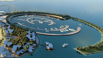 The Island Resort er en halvmåneformet, kunstig ø på 12 hektar, som vil ligge åbent ud til havet. Øen vil blandt andet indeholde en temapark med rutschebane, en vandpark, et fem-stjernet hotel med 450 værelser, et luksus boligområde med 400 lejligheder og 48 villaer. Derudover vil der blive opført et Real Madrid museum, et butikscenter, en lystbådehavn med 10.000 pladser, en yacht-club, swimming-pool, fitness-centre og sportsklinikker.
