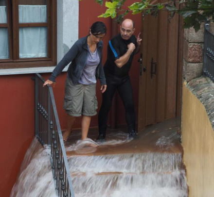 I går var advarselsniveauet hævet fra gul til orange flere steder i Spanien, fordi der var udsigt til store mængder regn.